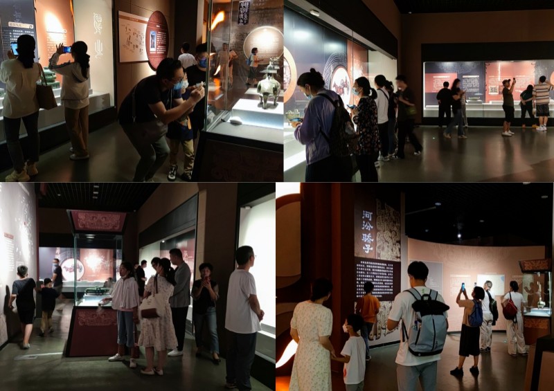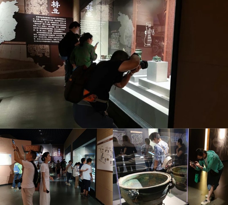 面对精美的文物,观众们化身摄影师,在文物前驻足拍照……