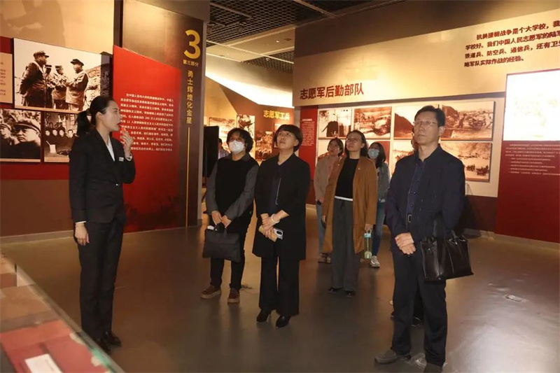 签约仪式后,天津博物馆社教人员邀请高校教师走入展厅,观看正在展出的《“震撼世界的较量”抗美援朝战争主题展》。同时以《梁启超和他的孩子们》展览内容为背景,开启了一场生动的家风主题教育讲座。通过在博物馆中以多样的形式接受红色文化与家风教育洗礼,天津商业大学领导与教师切实感受到博物馆教育在教学实践中的优越性,教师们纷纷表示将抓住与天博合作的良好机遇,通过馆校共建让更多青年人走进博物馆,铭记先辈历史、继承伟大精神,树立起为实现中华民族伟大复兴接续奋斗的信念和信心。
