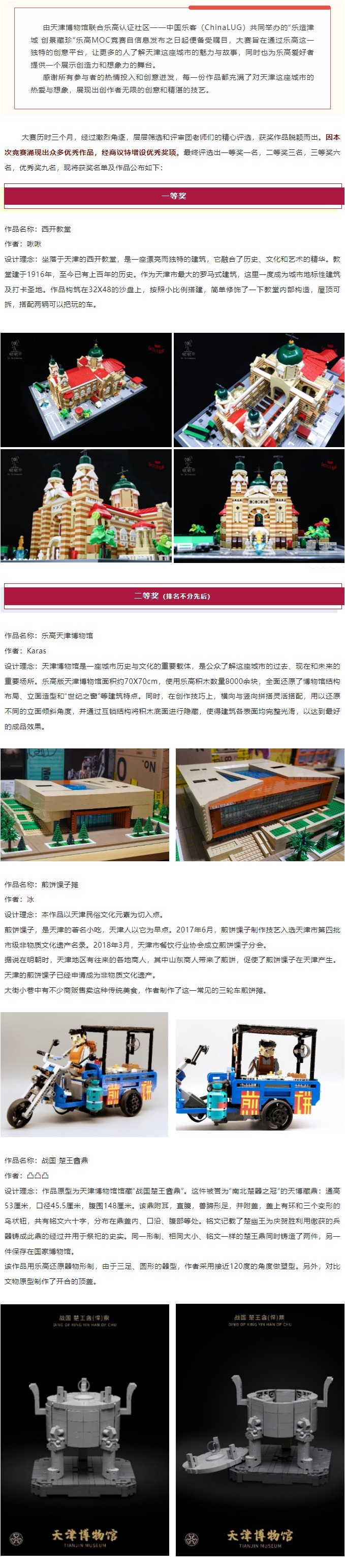 “乐造津城 创景藏珍”乐高MOC竞赛评选结果公布