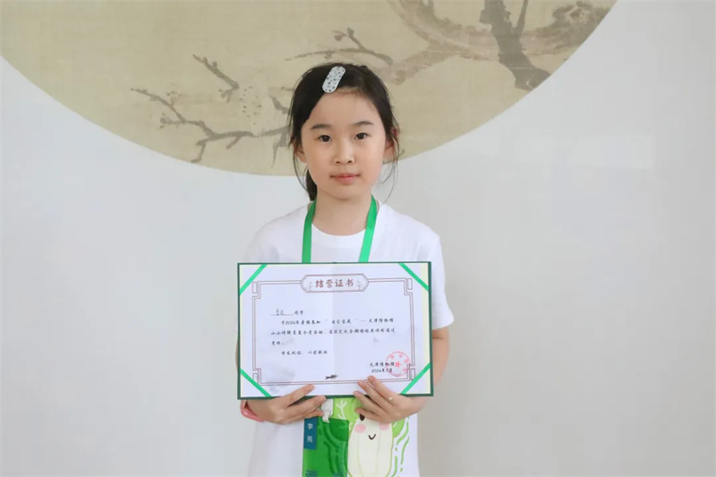 今年是我第二次参加天津博物馆夏令营,依然充满新鲜感,依然收获满满。在这几天里里,无论是介绍展品的仪态手势,还是讲解时的吐字发音,我都受到了老师的专业指导,并且认识了新的展品,交到了新的朋友,和大家在一起学习和玩耍特别开心,每天的活动都丰富多彩,不仅增长了见识,开拓了眼界,还锻炼了动手能力,并且最后还有比较良好的展示。我非常喜欢这个夏令营!