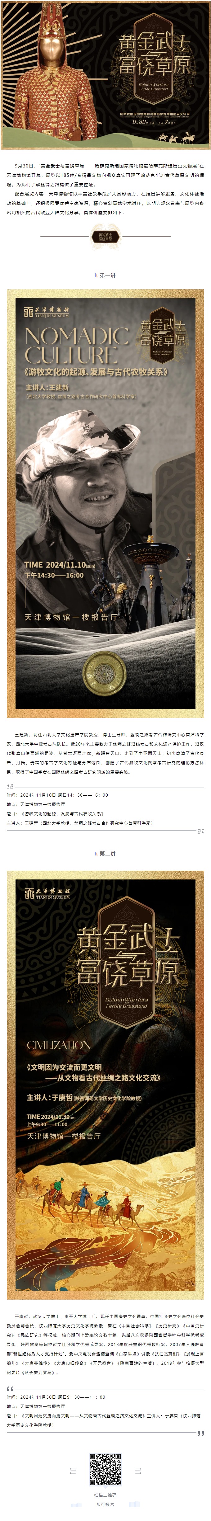 “文博讲堂”本周推出“哈萨克斯坦历史文物展”系列讲座