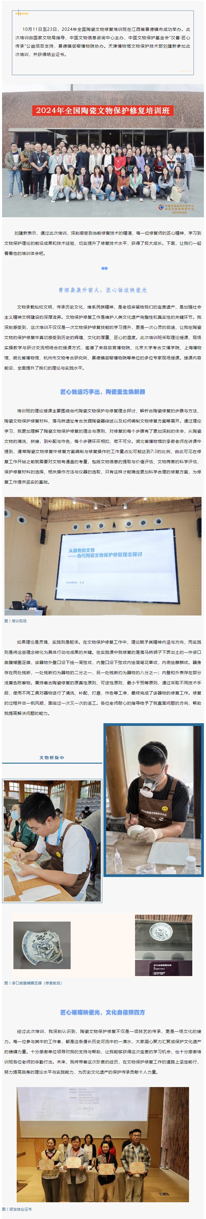 匠心筑梦 瓷韵传承——天博业务人员参加全国陶瓷文物保护修复培训班