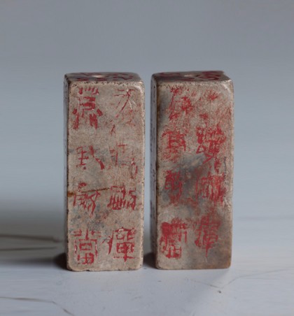 西汉(公元前206—公元8年) 长2.2厘米 宽0.9厘米 White jade gang mao and yan mao charms (pairs) Western Han dynasty (206 BC-AD 8) Length 2.2 cm, Width 0.9 cm These jade rectangular pillar-shaped charms are eac...