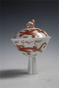 清乾隆款矾红彩飞龙赶珠纹天鸡碗