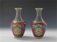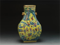 清同治款黄地粉彩婴戏图双狮耳瓶