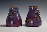 清雍正款窑变釉贴塑螭虎纹鱼篓尊