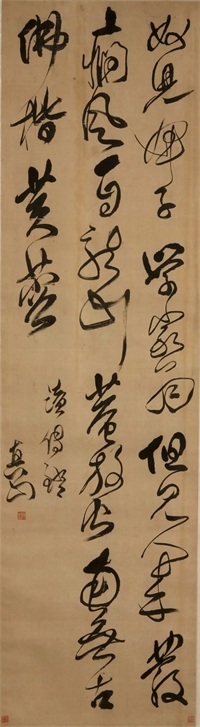 清 傅山 草书《读传镫》诗轴