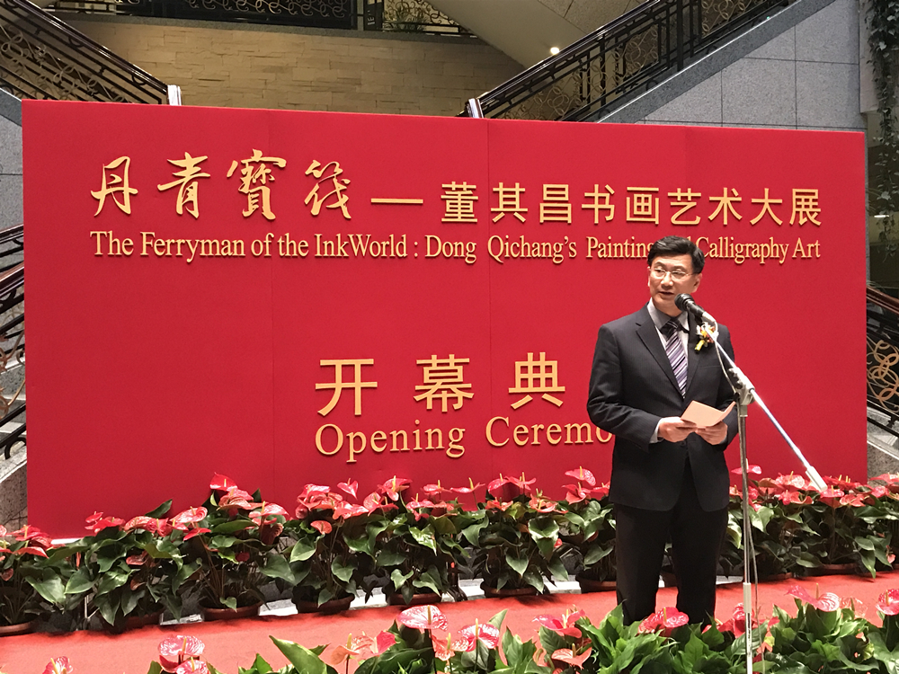 天津博物馆副馆长钱玲出席开幕典礼,并在新闻发布会致辞,她强调“这是一次非常重要的董其昌展览,全面、立体地展示董其昌书画艺术及源流。天津博物馆两件重要藏品唐摹王羲之《寒切帖卷》、及与董其昌同时的丁云鹏绘《云山图轴》的参展正体现这一特点。”