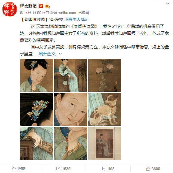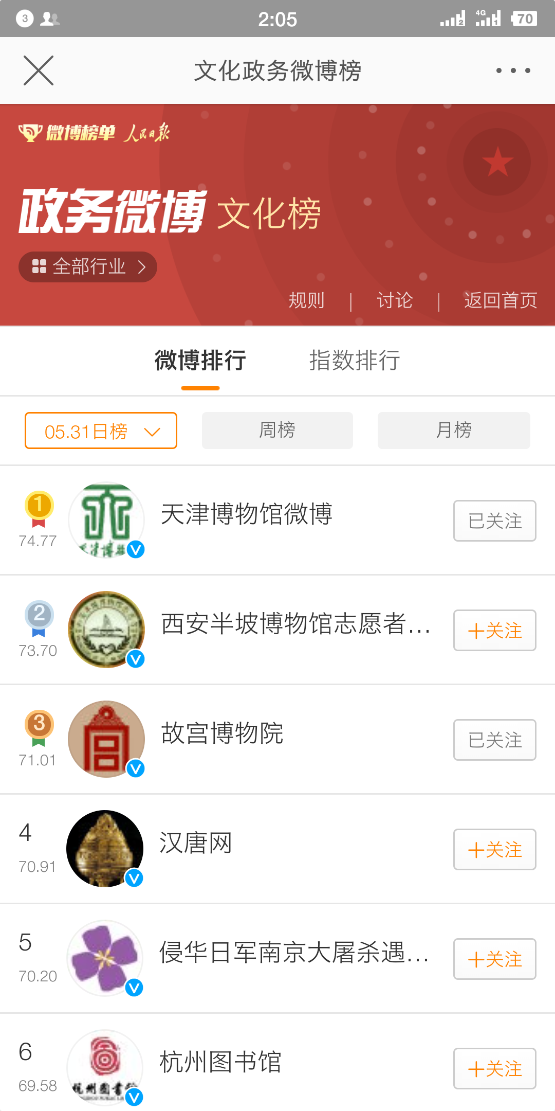 近几年,以微博、微信等为代表的新媒体发展迅猛,在博物馆形象塑造、品牌传播等方面都产生了意义深远的影响。2018年,我馆探索媒体宣传的新渠道,以微博为媒介,策划“百年天博”、“读城”等活动,通过发布创意文物海报、H5游戏、大V走进博物馆等方式,吸引更多观众关注博物馆,对提升我馆的品牌影响力发挥了重要作用。这些宣传活动中, 我馆信息阅读量近一亿次,并登上微博热搜榜第三名;天津博物馆官方微博账号也借此连续数周登上“博物馆类微博账号影响力榜”。得益于在新媒体领域的探索,天津博物馆荣获2018中国自媒体创意营销大典金锋奖”、“第二届IAI国际旅游奖——媒介创意类金奖”、“微博2018读城最具人气博物馆奖”等三个奖项。