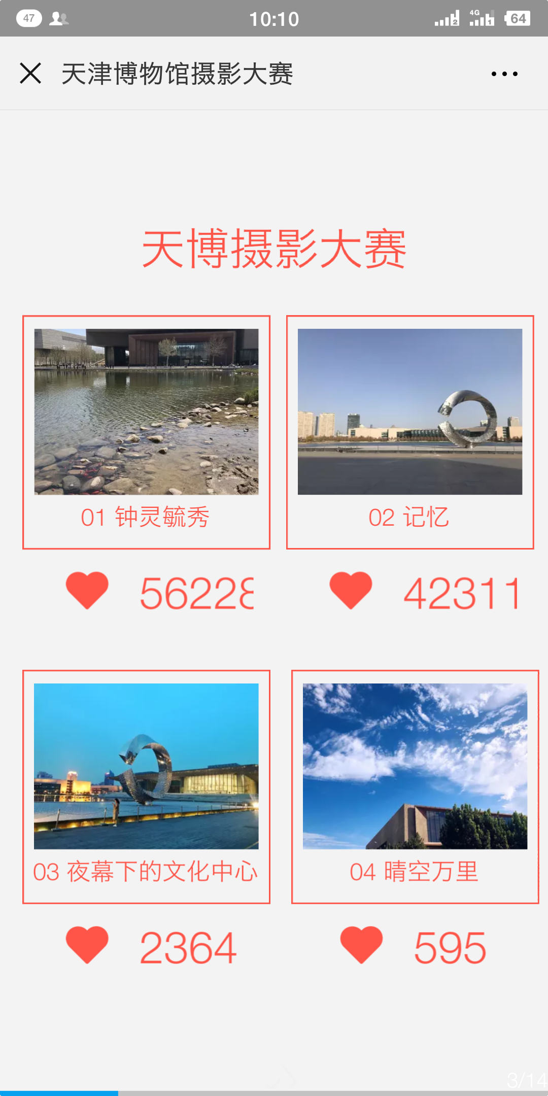 快乐工作是我们的信条,我们的职工不仅会工作,更会生活。年末,天津博物馆首届职工摄影大赛欢乐开赛,大家踊跃参与,用镜头展示我们的馆,体现出员工积极向上、爱馆敬业的的精神面貌。这一活动,还在社会产生很大影响,各界纷纷投票,目前排名第一的照片已经有56千多赞。评选活动结束后,这些参赛作品还将集中展出。
