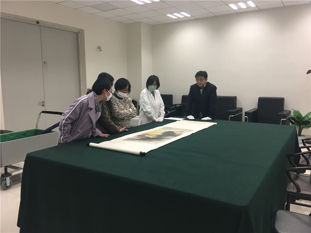 2019年3月26日,广州艺术博物院副院长梁丽辉一行三人到我馆接洽文物借展事宜并观摩我馆藏岭南画派绘画作品。