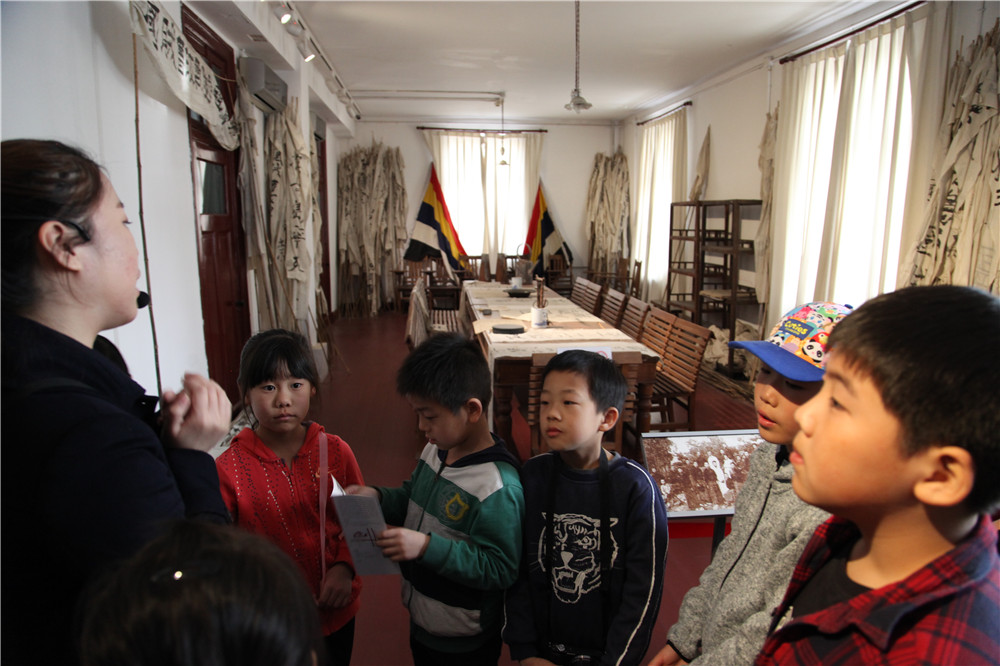 踏入北京新文化运动纪念馆,复原的五四时期北大红楼历史面貌带给观众视觉上的震撼,游学队伍好像瞬间穿越回了“五四时期”。展厅恢复了图书馆主任室、登录室、第二阅览室、第十四书库,以及新潮杂志社、学生大教室、红楼大门等的历史原貌,较全面地展示了陈独秀、蔡元培、毛泽东、李大钊等先驱在红楼工作时的情景,凸显五四新文化运动时期的红楼历史氛围。漫步于此,大家被革命精神所打动,游学队伍中一位家长告诉同行的孩子:“宝贝,正是这些先辈们抛头颅、洒热血,才有了我们今天的幸福生活。今天你了解的革命历史,回去也要讲给你的同学们听。”孩子们坚毅的目光告诉我们,历史将永远被铭记。