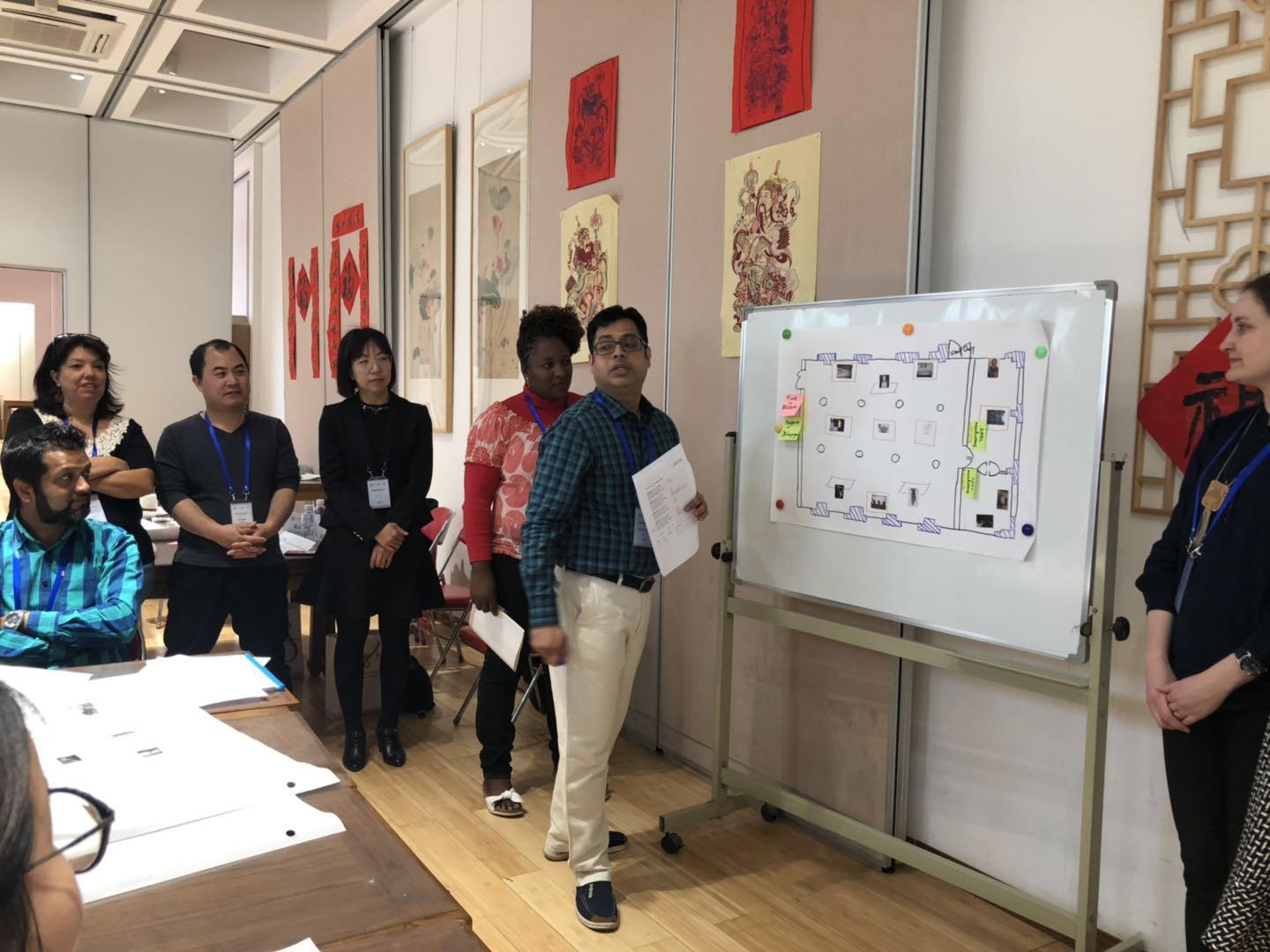 培训班还采取了分组讨论、经验分享、藏品阅读、协作策展览、小型研讨会、展示汇报等形式进行。每节课都采取不同的分组,使每位学员都能与其他各位学员获得沟通交流的机会。通过频繁的分组讨论,鼓励每位学员踊跃发言,交流分享各国各馆在藏品管理、藏品著录、藏品保管、收藏等方面的经验教训。“藏品阅读”作为培训班的经典课程之一,选用故宫文创或教育活动用品等作为“藏品”,让学员仔细观察这些“藏品”,记录尺寸、颜色、工艺等信息,并通过新颖的方式诠释“藏品”故事。协作策展由学员以组为单位从藏品保护角度出发,对展览设计中藏品使用进行风险评估,完成策展。小型研讨会环节,学员与四位外国专家依次交流,沟通探讨培训中的收获和疑惑、工作中的经验和难题。展示汇报环节由中外两位专家克劳德·福贝尔、果美侠讲解展示汇报的实用技巧,并以小组形式进行实践。
