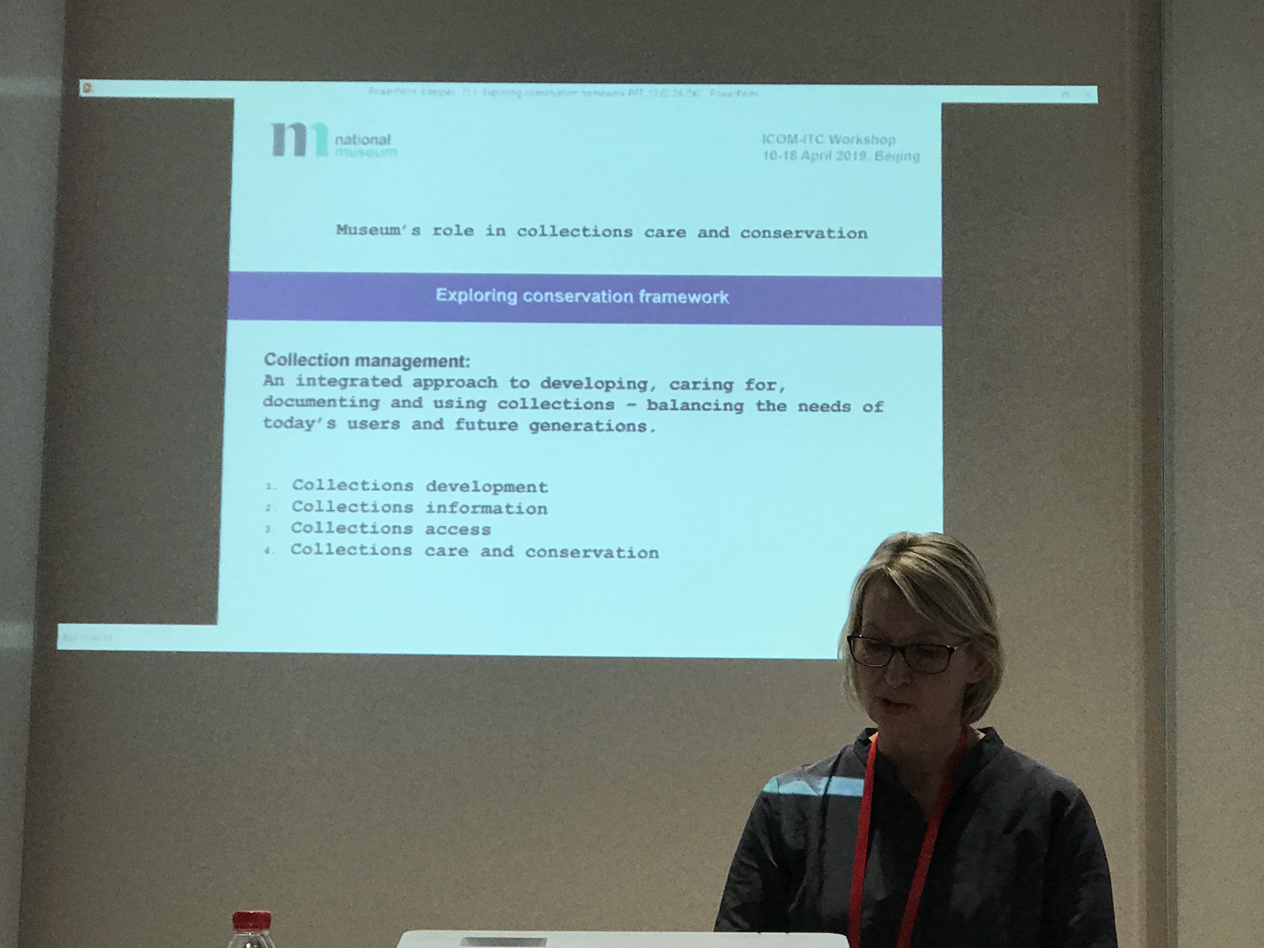在培训中,来自世界各地与文物博物馆相关机构的学员们就“当今博物馆藏品之挑战”这一主题从藏品管理、藏品著录、藏品保管、收藏中的争议等专题共同学习、交流互动、取长补短,加强了中国博物馆界与世界各地文物博物馆相关机构的沟通,对博物馆藏品相关工作具有极其重要的指导意义。通过培训班的学习交流,感悟到我国对文博事业给予的高度重视,以及目前中国博物馆发展呈现的良好态势,作为文博工作者,我们要紧紧抓住这一良好机遇,奋起直上,同时要积极应对挑战,不辱使命,守土尽责,将文物保管好、研究好、利用好,促进历史文化的解读和传承,为实现文博事业发展,为实现中华民族伟大复兴的中国梦作出更大贡献。