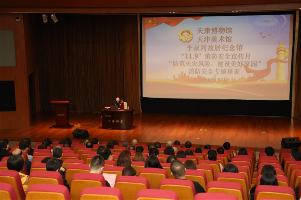 2019年11月13日,天博开展了“11 .9”消防专题培训,天津博物馆、天津美术馆、李叔同纪念馆全体员工参加。公安消防河西支队宣教科谢科长就消防安全的重要性、消防“四个能力”、疏散逃生的基本常识以及消防器材的正确使用方法等方面的内容,对文博场馆如何树立公共安全消防意识,预防、杜绝可能引起消防隐患及个人面对突发火灾事故,如何进行救助和逃生等知识进行了全面讲解。通过培训,大家对防火自救的基本知识有了进一步的了解,更好地掌握了消防应急措施的运用和消防器材的使用方法,提高了我馆职工的消防安全意识、增强了应急处置能力。