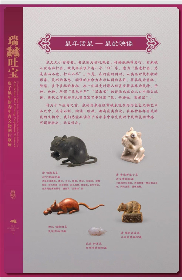 2020年为中国农历庚子年。值此鼠年新春到来之际,中国文物报社联合30多家文博机构,甄选数百件以鼠为题材的文物、艺术品和珍贵标本,以及其他生肖文物,向广大公众奉上图文展览。