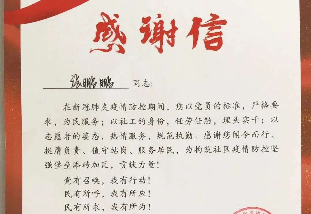 一个个熠熠生辉的徽章、一封封激动人心的感谢信社区下沉一线服务人员最大的肯定和认可,是对“疫”线冲锋者最好的褒奖和赞美。值守不间断,抗疫无死角。每一位天博人在平凡的值守点,坚守着不平凡的责任。他们既是“战斗员”、又是“守门员”,既当“宣传员”,又当“劝导员”,充分展现了天博党员干部高度的政治责任感和工作热情,得到基层社区和广大居民群众的普遍好评,为打赢疫情防控阻击战贡献出了天博力量。