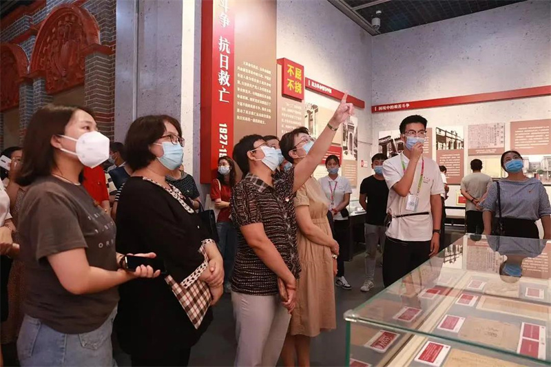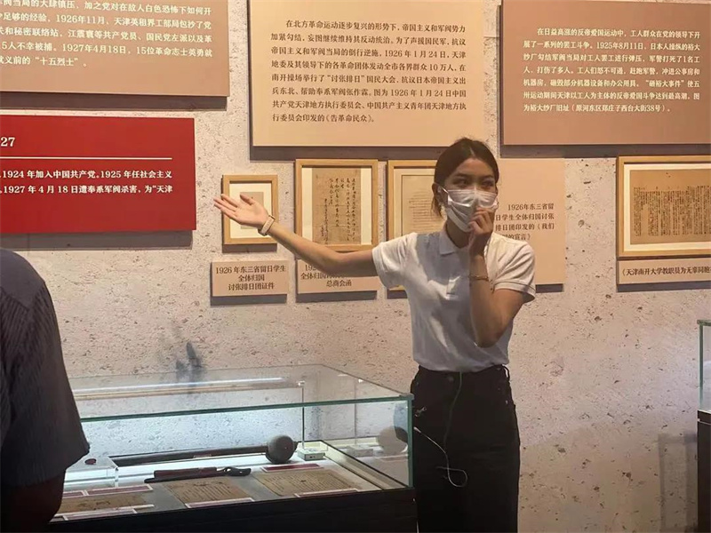 作为天津市党史学习教育的主阵地,天津博物馆于6月18日开展的“红色记忆——天津革命文物展”,每天有近6000名党员群众前来参观。为了高质量完成讲解接待任务,天津博物馆充分利用社会影响力,积极组织招募展览讲解志愿者,目前每天有近20名志愿者在馆服务。这些志愿者中,有年逾花甲的老党员,有风华正茂的大学生,还有朝气蓬勃的小学生,他们积极学习党史相关内容,深刻理解展览内涵,深情讲述革命文物背后充满人文精神和革命情怀的故事,为观众奉献出一场场精彩讲解。