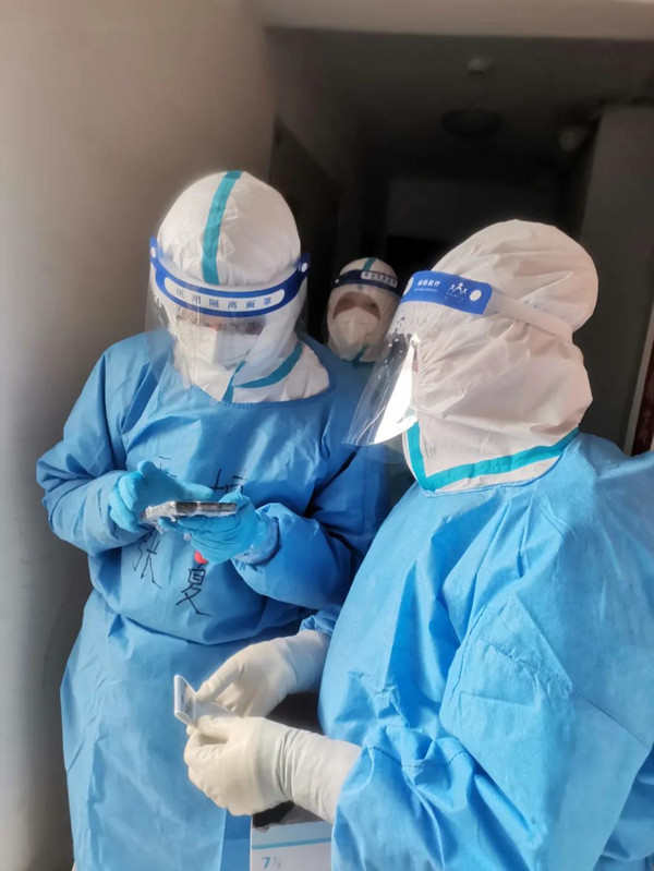 虽然,我们只是奉命支援津南万人中的一支小分队,但是,我们与这成千上万人一样,一声号令,来不及与家人道别、来不及收拾行装、来不及感受送行时的悲壮......初到住地时的无助、领到后方物资时的喜悦、初进封控区时的战战兢兢、脱下防护服时的如释重负、收到居民感谢时的感动、看到孩子们做鼻拭子时坚强忍耐时的不忍和心痛,我们共同体验,并铭记在心。