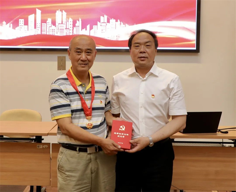党课前,陈卓为离退休党支部陈铭江同志现场颁发“光荣在党50年”纪念章,鼓励广大青年干部也要向老一辈共产党员学习,立足本职工作“长本事、提能力、创业绩”。同时传达了鸿忠书记“庆祝中国共产党成立101周年专题党课”、天津市文化和旅游局党组召开的学习宣传贯彻市第十二次党代会精神处级干部专题读书班相关精神。