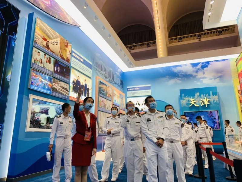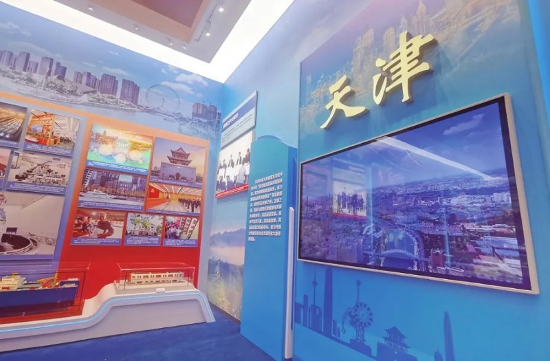 其中天津展区分为京畿门户天津卫、创新发展天津为、生态优先天津蔚、文明幸福天津味四个单元和手工拓印杨柳青年画互动版块,铺展开党的十八大以来天津波澜壮阔的发展画卷。