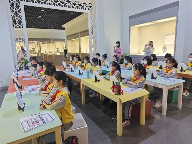 3月29日,天津博物馆迎来了和平区中心小学的学生,这是自3月18日活动开启后,“板凳上的博物馆”迎来的第二批小学员。