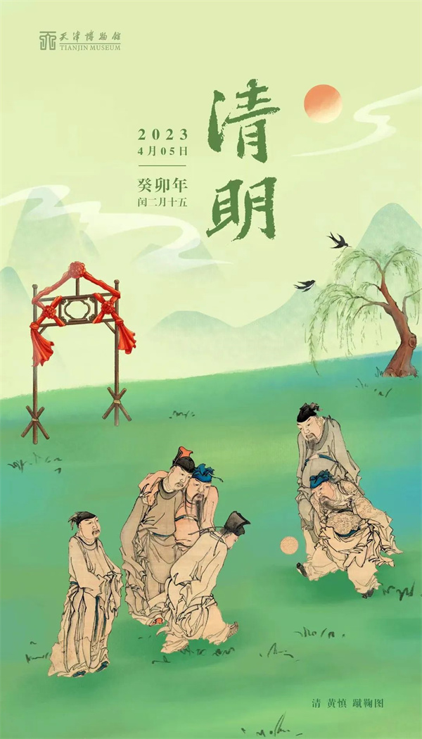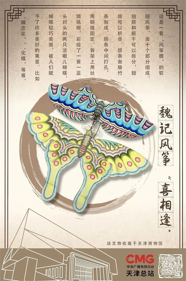 2023年4月5日上午9点12分52秒,我们迎来了二十四节气中的清明。央视新闻客户端总台天津总站采用天津博物馆馆藏四大民间艺术之一的“风筝魏”作品——“喜相逢”文物元素发表文章《古“津”奇谈二十四节气|清明:融自然节气与人文风俗为一体》。