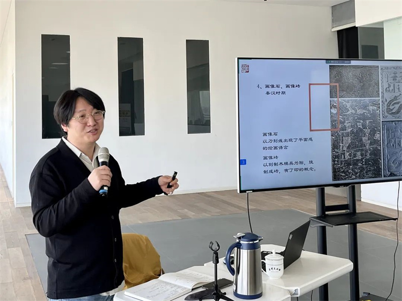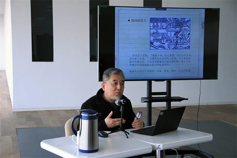 其中包括:陈履生主讲的“20世纪中国版画的时代担当”,李垚辰主讲的“版画语言:现实与媒介的碰撞”,于洋主讲的“丹青画卷与史诗意象——百年主题性中国画经典回望”,路洪明主讲的“主题创作与时代生活漫谈”,范敏主讲的“刀刻时代——画说中国现代版画艺术”,叶春辉主讲的“主题表达与价值维度——中国画生命力和文化精神的当代延续”,石磊主讲的“水印木刻版画与雕版印刷术”,焦磊主讲的“刀笔烽火——中国现代创作版画的历史回顾”,这些业界大咖分别从不同的侧面与视角,为观众带来一场场知识盛宴。