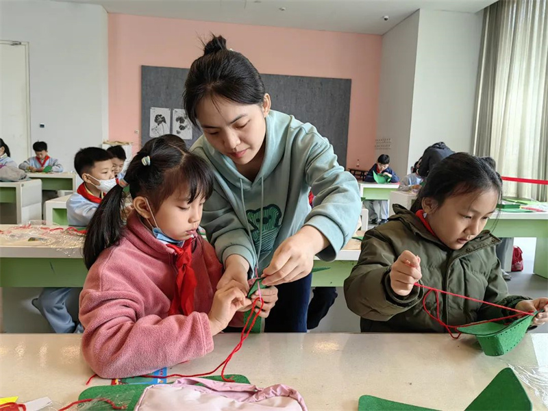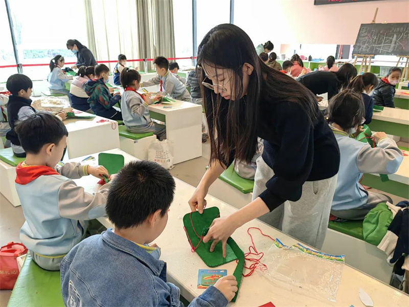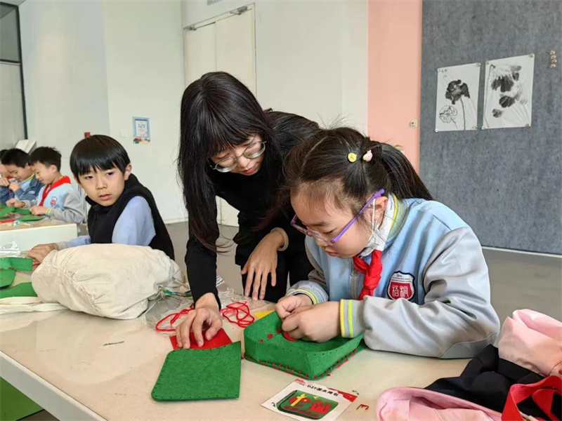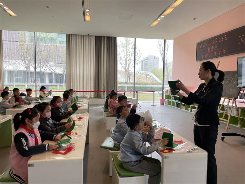 讲解部分结束,李老师带领小朋友们进入做手工环节,同学们亲手制作了“战士的小布包”。同学们通过在美术馆里上示范课,弘扬革命传统,提高精神素养,真切地感受到长征是理想信念的远征。李老师以毛主席的诗词“恰同学少年,风华正茂;书生意气,挥斥方遒。”结束了本次课程,希望同学们能够携手走好属于我们的新时代长征路,为实现两个一百年奋斗目标,实现中华民族伟大复兴中国梦而奋斗!