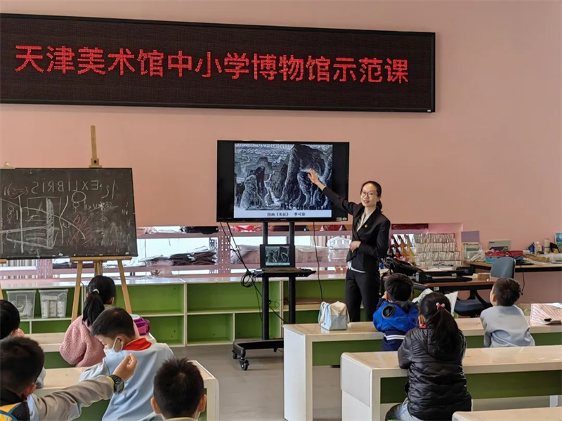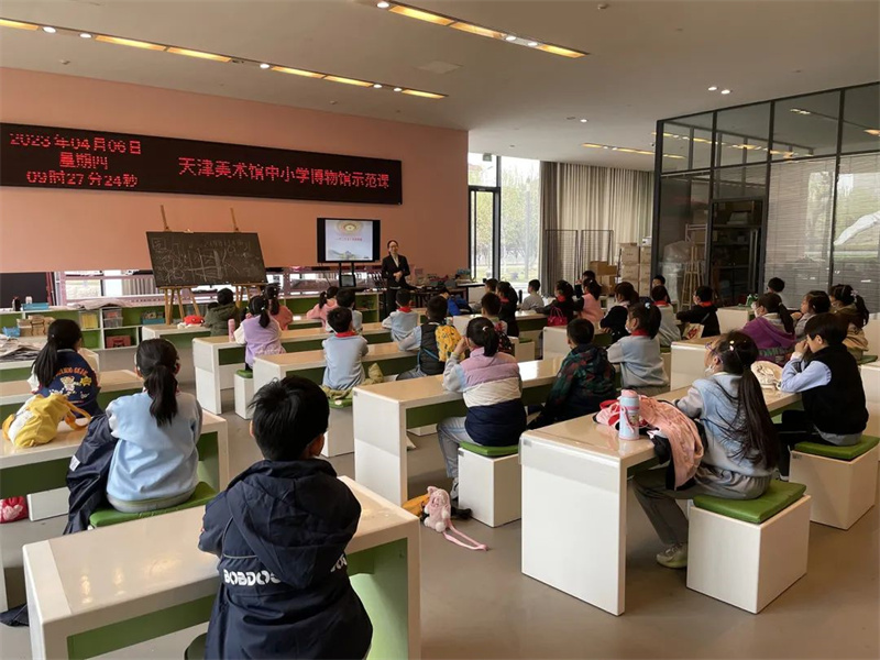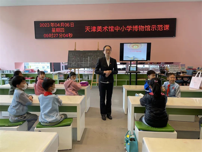2023年4月6日上午,河西区梧桐小学三年一班的同学们来到天津美术馆,上了一堂由天津市教育两委、市文物局组织开展的中小学博物馆示范课——《一个两万五千里的奇迹》,我馆综合办公室李颖担任主讲。