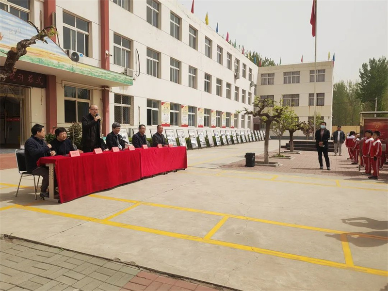 为深入学习宣传贯彻党的二十大精神,推动文化赋能乡村振兴,在天津博物馆党委的支持下,天津博物馆驻村工作队联合天津美术馆、博物馆宣传教育部,在蓟州区杨津庄镇半壁店小学开展“中华百年看天津”巡展暨美术作品捐赠活动。天津博物馆副馆长、天津美术馆馆长、天津美术家协会副主席马驰,国家一级美术师、天津市老年书画研究会会长刘传光,杨津庄镇党委书记潘晓东,镇党委委员、组织委员赵玉秀,杨津庄镇中心校总校长张海青,半壁店小学校长崔文旺,驻村工作队全体成员,以及博物馆、杨津庄镇政府相关工作人员参加,杨津庄镇教育系统的党员和青年骨干,优秀学生代表共计200余人一同参观展览。