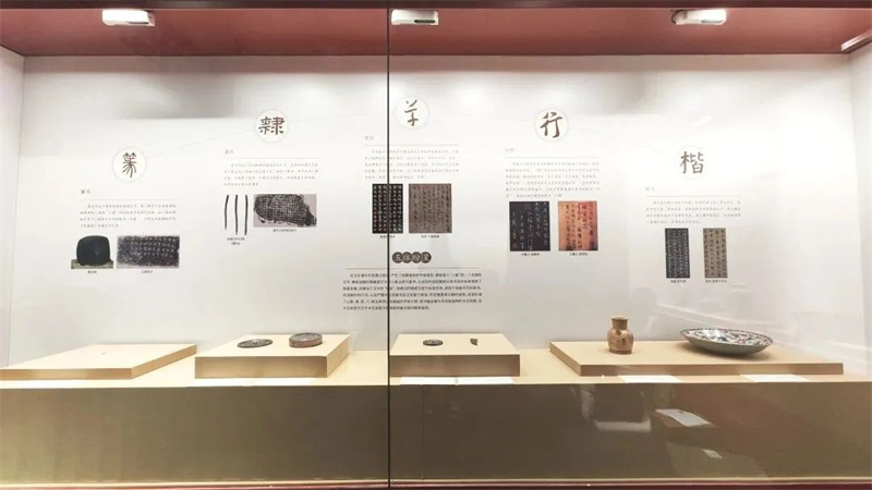 作为汉字艺术表现形式的书法,其发展历程也在此次展览中进行了突出呈现。在综合展厅中,汇集了大量唐、宋、元、明、清的精品碑拓和墨本,将自魏晋以降“晋尚韵、唐尚法、宋尚意、明尚态、清尚朴”的书风流变娓娓道来,将中国人依托有形之迹寄托超然物外之境的精神旨趣表现地淋漓尽致。