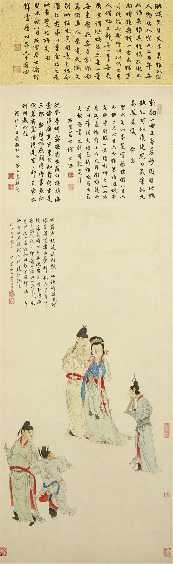 京津画坛的人物画题材广泛,包括古代仕女、文人雅士、历史故事、神话传说等,风格亦多种多样。齐白石人物画以篆隶笔意入画,画风简拙风趣,别开生面。俞明多绘仕女题材,线描工稳,画风沉穆静逸。徐操从古法入手,创作多以历史人物故事为题材,其线描、赋色,功力深厚、技法纯熟,作品雅俗共赏,对以后的连环画和工笔重彩人物画产生深远影响,从者甚众。溥儒所绘人物技法纯熟、文质相间,多作仕女、佛像,好画钟馗,形象各异,奇趣诙谐。刘奎龄不专师一家,且借鉴西法,多创作有一定写实和故事性的人物画作品。