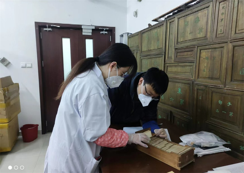 天津博物馆藏图书资料20余万册,其中线装古籍文献5.3万册,存藏量丰富,不乏善本、孤本,具有较高的文物价值和历史价值。2015年馆藏古籍列入《天津市十九家收藏单位古籍普查登记目录》,2020年列入全国古籍重点保护单位。作为古籍保护的基础和前提,全面清点普查尤为重要。图书资料部的同志们按照国家古籍保护中心制定的《古籍普查规范》要求,针对古籍原书进行题名、著者、版本、年代、册数等信息的电脑录入工作。由于古籍文献完残程度各不相同,为此,大家商议在录入信息的基础上增加“存藏现状”一栏,这样就对古籍整体情况有了更加全面的了解。目前该项工作正在全力推进,力争尽快完成古籍和天津地方文献的全面摸底普查,为下一步科学管理、保护开发奠定基础。