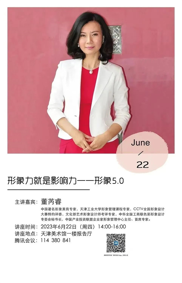 端午节当天,天美特别邀请中国形象美育专家董芮睿老师给带来题为《形象力就是影响力——形象5.0》的公益讲座。讲座将由女性形象5.0的递进变化史分析阐述在不同时期中,形象力对应的着装所产生的相应变化,讲述如何经由服饰的选择,精准表达自身的形象价值与性别魅力,实现内外兼修的形象传达,遇见更好的自己。活动详情请关注天博、天美、李叔同故居纪念馆官网或官微,了解报名时间等事宜。