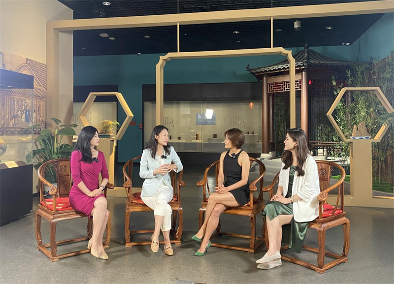 记者在天津博物馆展厅共聊参与2023夏季达沃斯论坛的感受