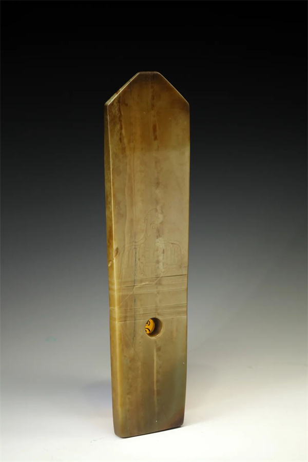 新石器时代龙山文化 黄玉鹰纹鸮首纹圭