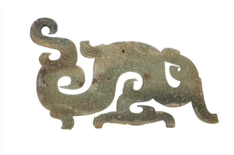 该部分以“显耀权政的玉兵器”“兽面助威严”“禽兽的法力”“龙凤至尊”四个专题,展现了中国玉文化史高峰之一的商代玉器,以玉器艺术的形式彰显了商代对内对外的王权和军权、对社会生活的控制和治理,反映出礼仪器和装饰品造型多样,纹饰丰富,技艺娴熟,风格浑朴等主要特点。