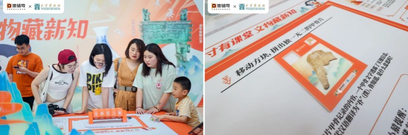 中英文对照的康熙十二月花神诗文杯转盘、用拼图拼出独一无二的甲骨图案、用积木排列出“鼎”字数千年的演变……在解谜与游戏中收获文物新知识。
