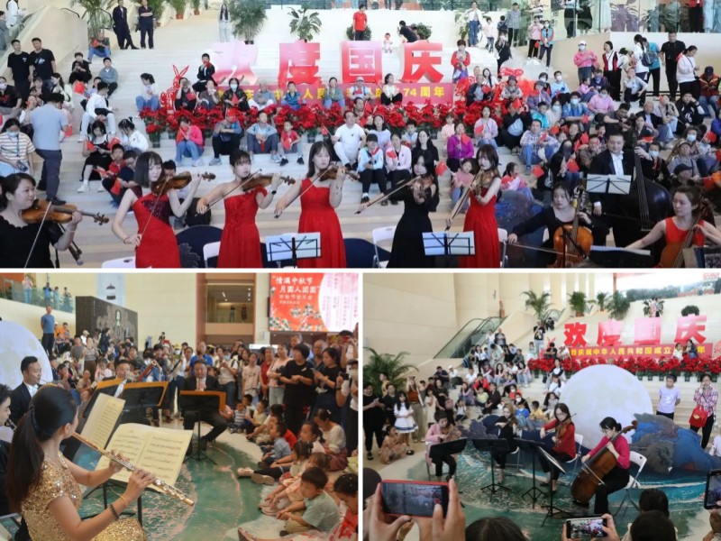 三馆结合馆藏优势、地方特色、节日氛围等因素,精心策划一系列丰富多彩、形式多样的社教活动,增强博物馆参观的体验性、互动性。中秋节当天,天津博物馆携手天津交响乐团举办“情满中秋节 月圆人团圆”主题音乐会。国庆节当天,上演“歌唱祖国”快闪活动,广大市民深情同唱一首歌,为祖国送上最真挚的祝福。
