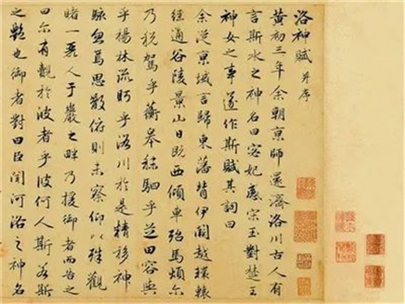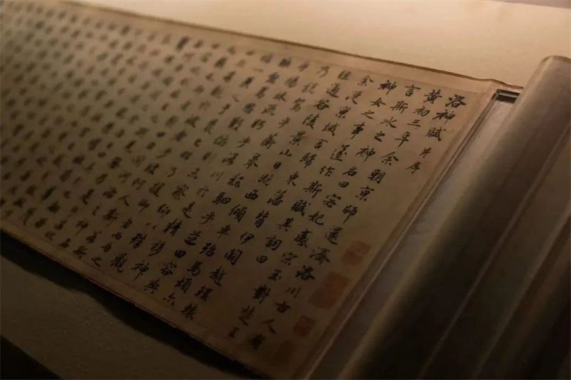 宋末元初书法家赵孟頫创作的行书书法作品《洛神赋》是天津博物馆的重量级藏品,赵孟頫曾多次书写《洛神赋》,传世版本也较多,但其中保存完整的精品共两幅,分别收藏于北京故宫博物院和天津博物馆。