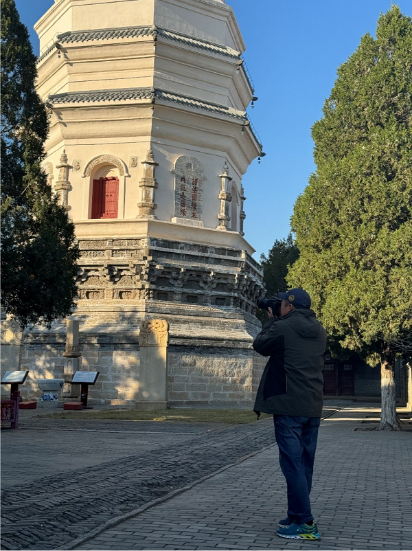蓟州区摄影家协会副主席、秘书长赵敬波在拍摄蓟州·白塔寺