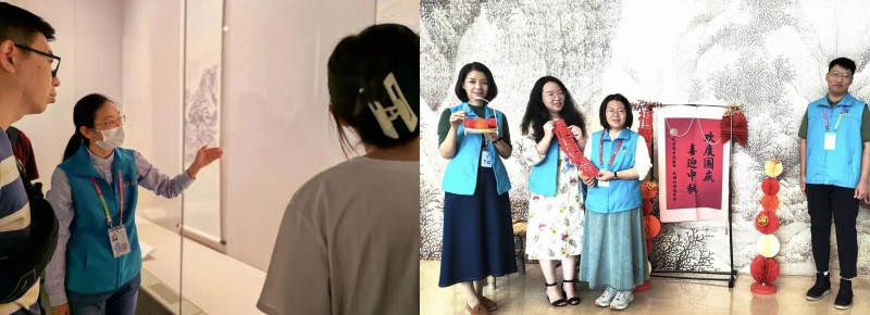 从初到博物馆时的紧张青涩到如今游刃有余地面对不同年龄观众、团体参观、重要接待等,他们以丰富的知识储备、训练有素的讲解能力,向大家传递着展览中蕴藏的历史与文化价值。文化与旅游融合背景下,“博物馆游”持续升温,为保证观众的假期参观需求,讲解人员主动放弃休息时间,以饱满的精神状态战斗在岗位一线。截至目前,2023年天津博物馆接待观众人数达200万人次。仅国庆假期,接待观众达15万余人次,讲解230余场,出色完成了假期讲解接待任务。