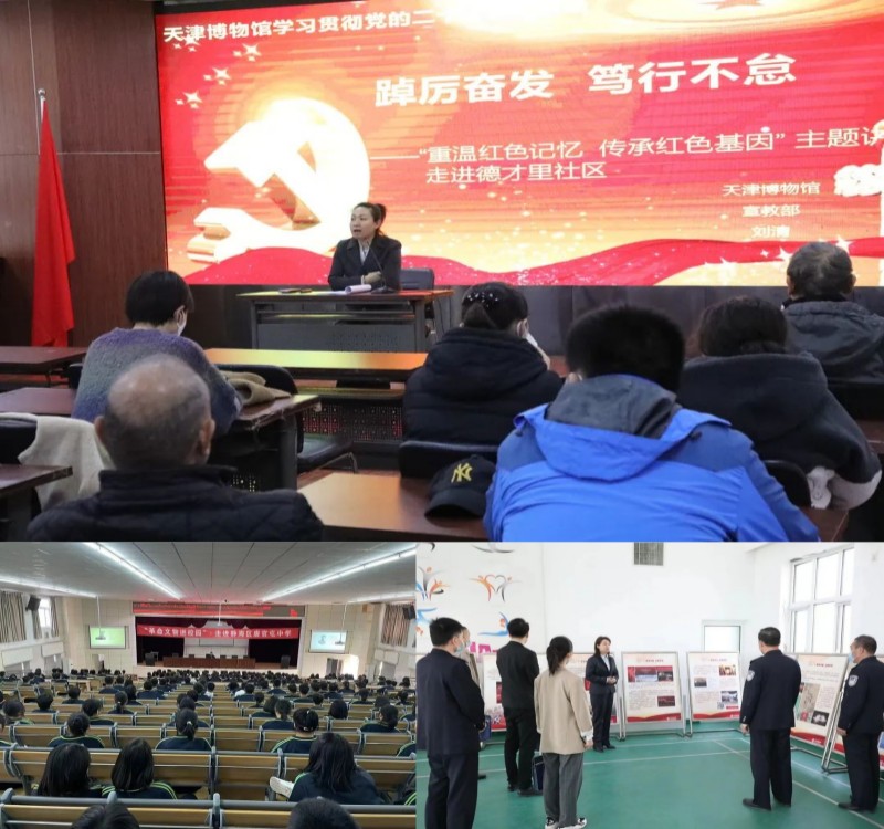 天津博物馆坚持以人民为中心的发展思想,积极开展“七进”活动,将展览内容、时事热点浓缩为一场讲座、一次流动展览、一项文化体验活动等,在天博宣传教育部成员的积极策划下,送进社区、学校、企业、乡村、军营、机关、网络,打通宣传群众、教育群众、关心群众、服务群众的最后一公里,让老百姓充分享受到公共文化资源的福利,通过博物馆的流动宣传让文物“活”起来。