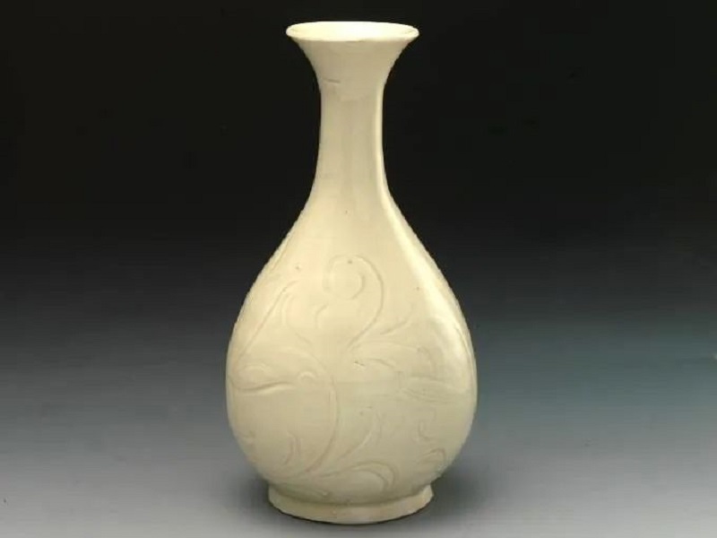 宋 定窑白釉划花萱草纹玉壶春瓶