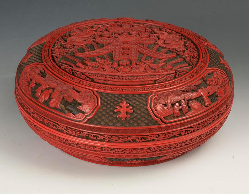 清 剔彩春寿圆盒