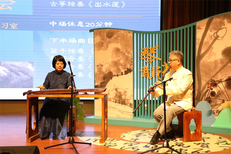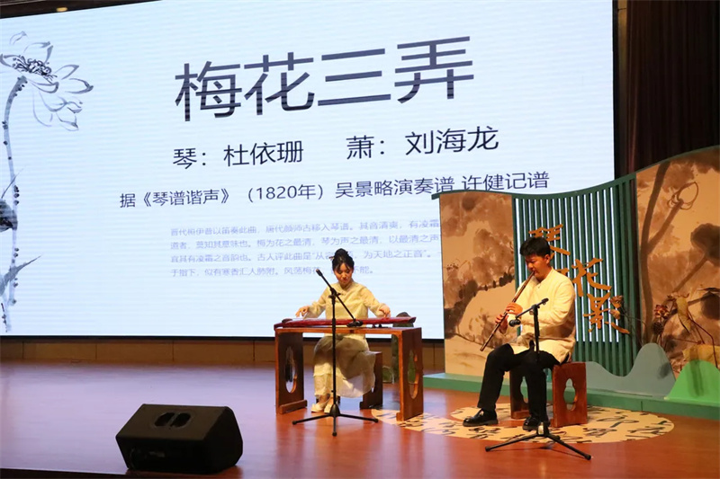 伴随着潘老师的叙述,古琴声悠悠响起,与情节发展相得益彰,为观众呈现了一幅幅生动的历史画面。古琴大师李凤云与笛箫演奏家王建欣的精彩演绎,更是为活动增添了一抹艺术的华彩。他们的技艺娴熟,音韵悠扬,让人们沉浸在美妙的音乐世界中,感受着中国传统文化的博大精深。