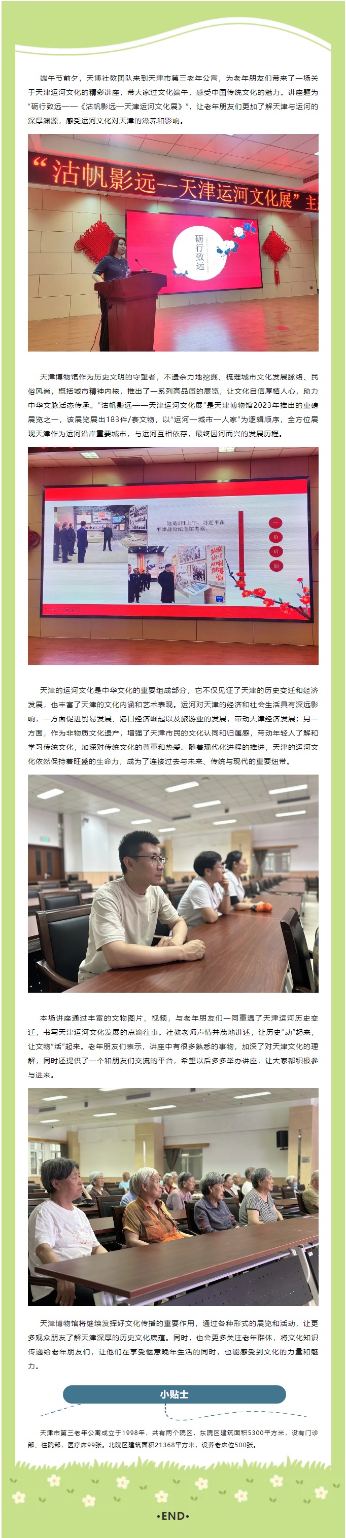 天博社教团队走进天津市第三老年公寓 讲述天津运河文化