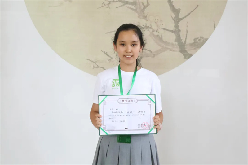 我是南开区中营小学的何懿,今年11岁。在2024年的暑假,我参加了天津博物馆举办的小小讲解员夏令营。这短暂的6天里,我不仅认识了许多新的同学和老师,还收获了丰富的知识,让我受益匪浅。参加这个活动,可以加深对讲解员的了解。每天早上,我们都会进行呼吸与口齿训练。在这段时间内,会学习如何腹式呼吸,这种呼吸方法可以更加省力,也可以让我们发出来的声音更好听。练习完呼吸后,就开始了绕口令环节。绕口令可以使口腔发音更加准确、清晰。除了给声音“化妆”,形体也要端正。在第3天时,会学习讲解员的礼仪,怎样站,怎样指文物,怎样微笑……都不能疏忽。不仅如此,我们还会学习如何撰写、修改讲解词,让自己的讲解词别具一格。后面3天,我们就去展厅内讲解,这时就可以展示这几天的成果了。我们不单会学习“主要科目”,还会做一些手工。有绒花簪子,滴胶杯垫,内画灯泡,考古发掘……都非常有趣。这个小小讲解员夏令营,不仅激发了我对古老而神秘的文物的兴趣,也丰富了我的假期,丰富了我的手艺,丰富了我的头脑。也让我明白了在陌生的人群中,不要怯场,要敢于展现自己。
