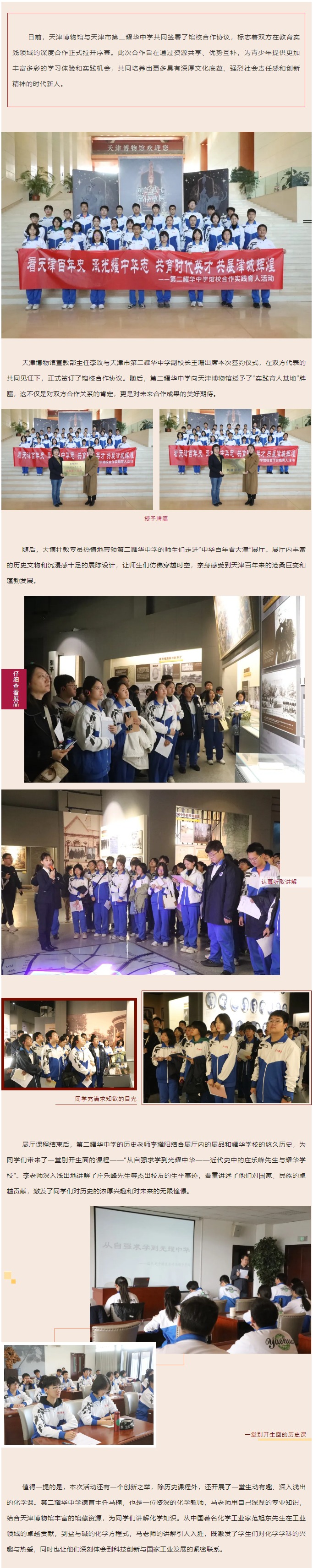 看中华百年 育时代英才丨天津博物馆与天津市第二耀华中学携手共建实践育人新平台